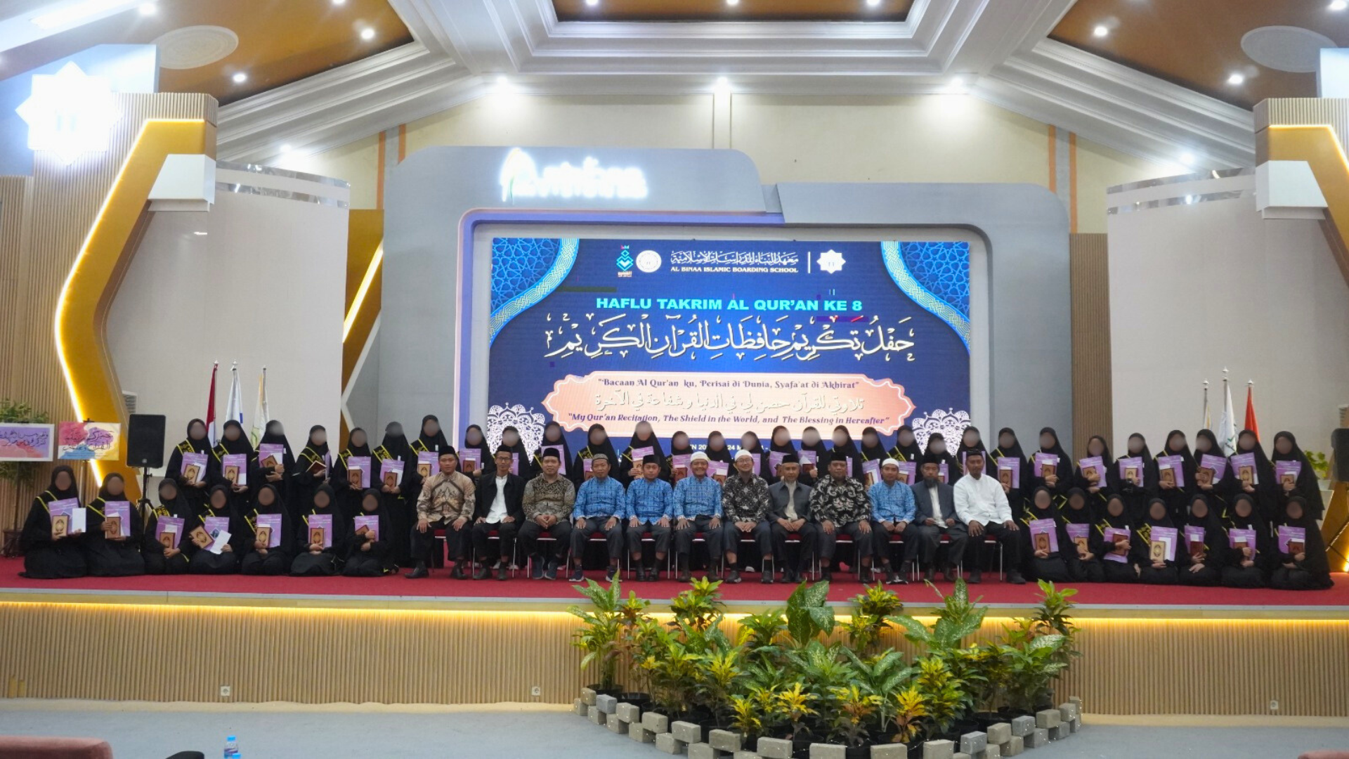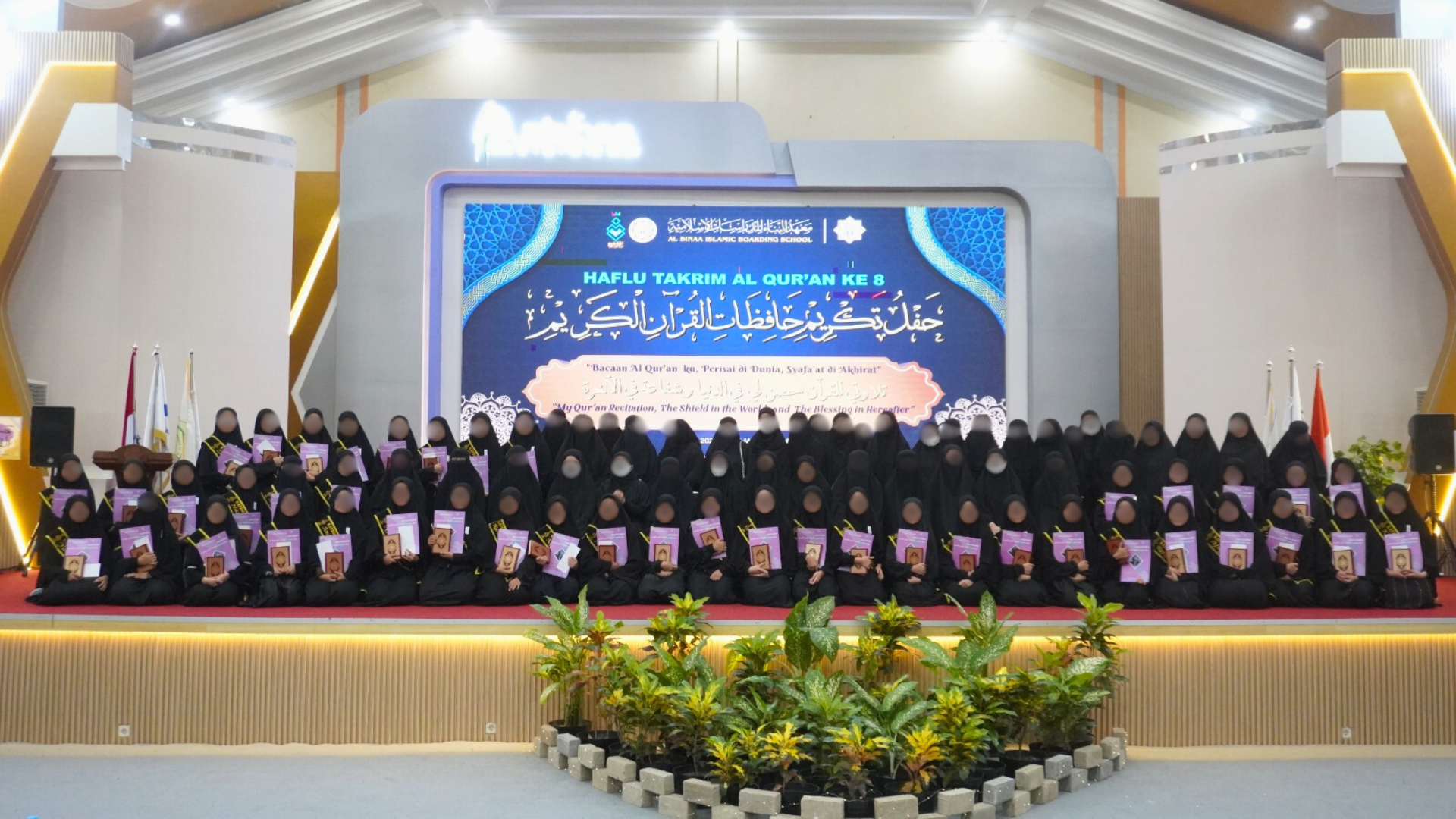 Kegiatan diakhiri dengan prosesi penyerahan sertifikat tahfidz, apresiasi dan Al Qur’an bagi 44 peserta yang lulus dalam ujian Mutqin Al Qur’an ke 8 Al Binaa Putri.