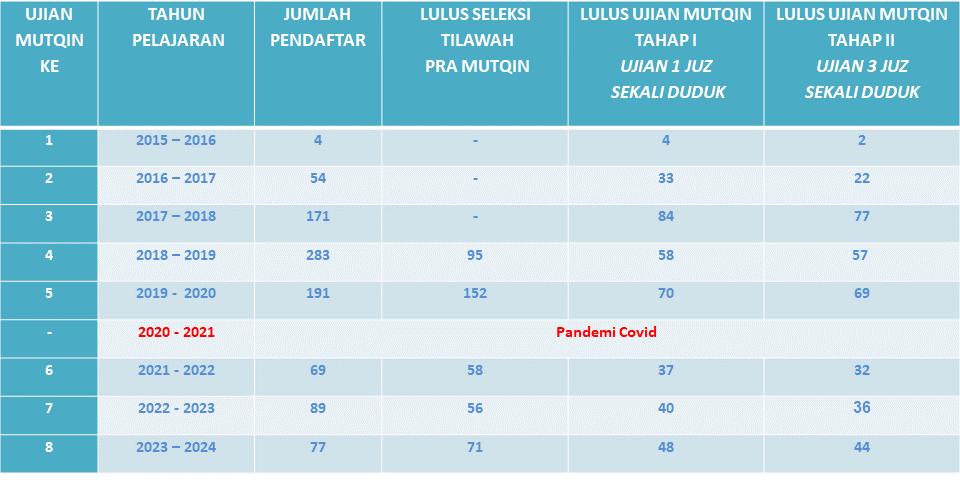 - Kriteria 8 Juz berjumlah 4 santriwati