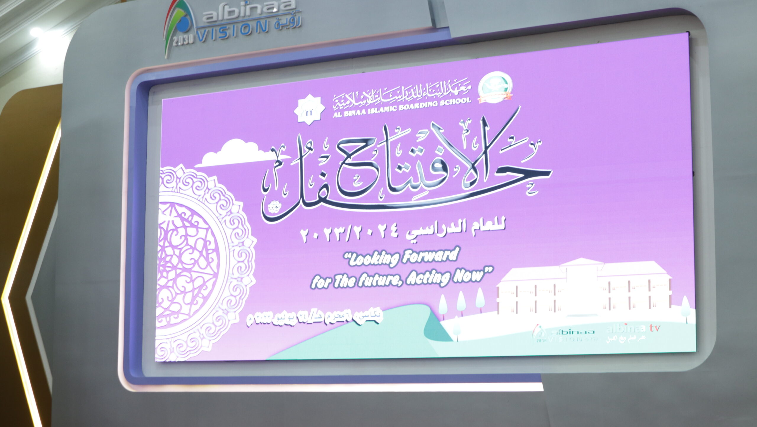AL BINAA PUTRI – Haflah iftitah merupakan upacara pembukaan untuk memulai tahun ajaran baru. Haflah iftitah tahun ajaran 2023/2024 beebeda dengan tahun sebelumnya. Adapun tahun ini haflah iftitah di Al Binaa putra dan putri dilaksanakan terpisah. Al Binaa putri melaksanakan haflah iftitah pada hari Senin 24 Juli 2023 bertempat di Gedung Mustaqbal yang berlokasi di area Al Binaa putra. Di hadiri oleh struktural putrid, asatidz dan para ustadzah pengajar di putrid serta seluruh santri dari kelas 1 – 6. Dengan mengusung tema “Looking Forward for The Future, Acting Now”. Berbeda dengan tahun sebelumnya, haflah iftitah tahun ini tidak berbarengan dengan acara serah terima dan penyambutan santri baru kelas 1, sehingga santri kelas 2-6 pun dapat mengikuti upacara pembukaan tahun ajaran baru ini.