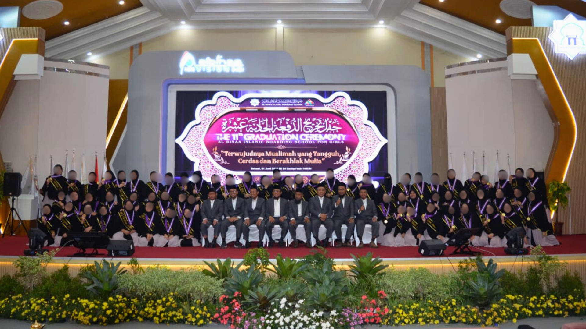 Acara dimulai dengan prosesi memasangkan bendera nama-nama angkatan Al Binaa, kemudian menanyangkan video kilas balik angkatan XI selama 6 tahun di Al Binaa. Dilanjut dengan pembacaan tilawah Quran oleh 2 orang wisudawati yakni Hafiyya dan Afiqoh Nurul Husnina yang kemudian diteruskan dengan menyanyikan lagu Indonesia Raya. Setelahnya ada sambutan dari Wakil Mudir Keputrian, Ustadz Musthofa ‘Aini, Lc., M.Ag. dan sambutan dari perwakilan walisantri ayahanda Awaluna Izzata Siqdi, Bapak Afdely Sidqi, ST., MT. Kemudian dilanjut dengan orasi ilmiah oleh Syamsudin Arif, M.A., Ph.D. Lanjut ada kesan dan pesan yang disampaikan oleh 3 orang wisudawati.
