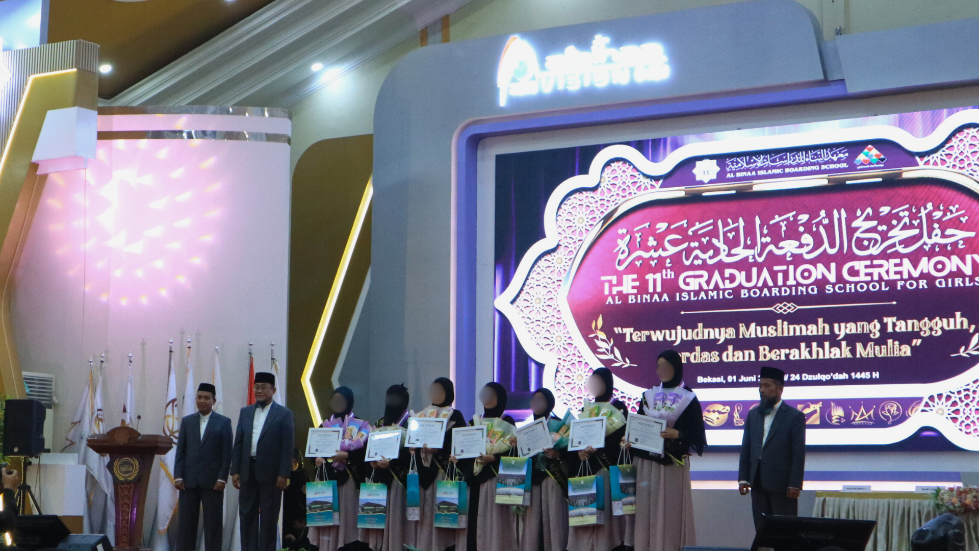 Gelaran wisuda angkatan XI kali ini melahirkan wisudawati terbaik dengan 3 kategori. Pertama, kategori terbaik dalam tahfidz Quran 10 juz mutqin ada 5 orang, yakni Rafifah Tsania Ramadhani, Amiroh Roudhotul Jannah, Hafiyya, Aliya Zafira Fakhrun Nisa, dan Hasna Alfiyyah. Kedua, terbaik dalam kedisiplinan dengan kriteria tepat waktu dalam melaksanakan ibadah, istiqomah dalam berpakaian syar’i, baik dalam bermuamalah, sopan santun dan taat aturan, tanggung jawab dalam amanah, serta giat dalam belajar, yakni Adkhilna Eljannata Maal Abror. Ketiga, terbaik dalam prestasi dan akademis, dengan nilai rata-rata kurikulum pesantren 96, nilai rata-rata kirikulum diknas pendidikan 94,97, Juara 2 KSM tingkat Kabupaten Bekasi Cabang Biologi Terintegrasi tahun 2023-2024, dan Medali Emas (Juara1) Bidang Biologi pada lomba Telkom Science Competition 2023-2024, yakni Fatihah Nailatul Azizah.