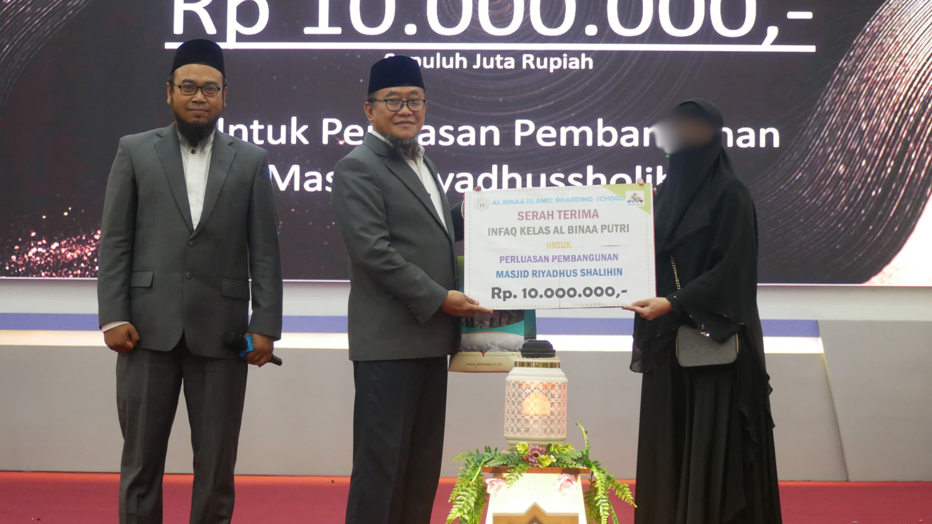 Alhamdulillah rangkain kegiatan Hafl Ikhtitam Al Binaa Putri telah terselenggara dengan lancar dan sukses. Dan alhamdulillah juga Al Binaa Putri memberikan infaq kelas untuk perluasan masjid riyadush sholihin sebesar Rp. 10.000.000.